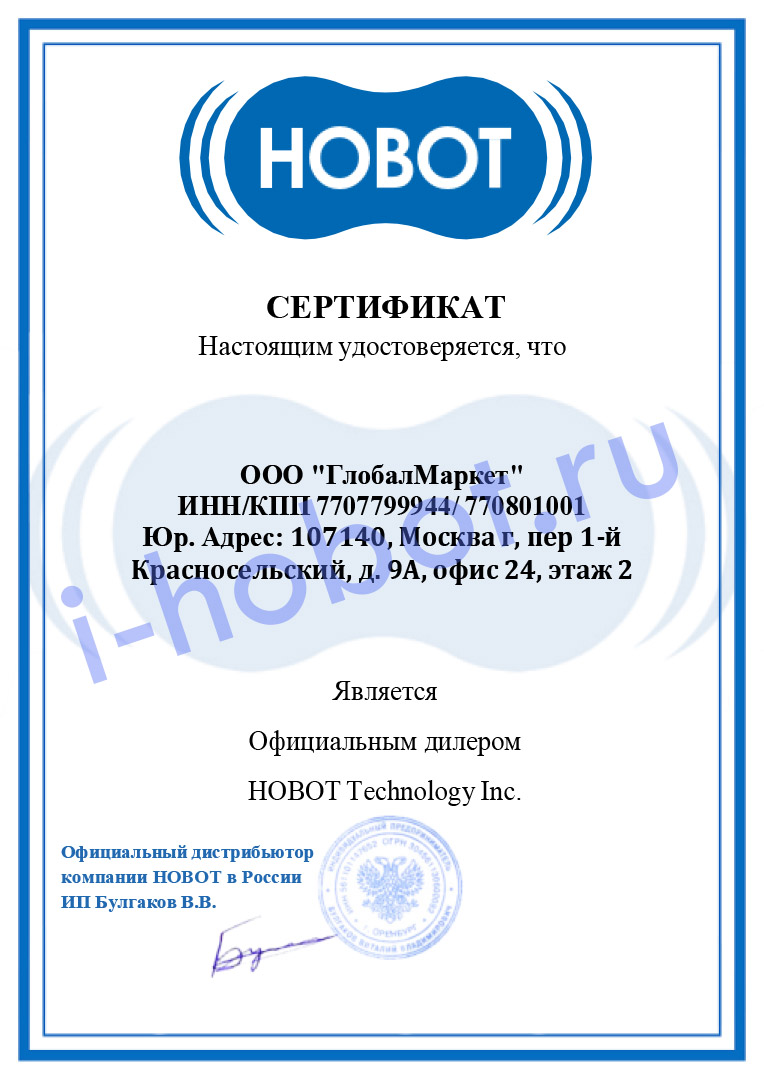 Cертификат HOBOT 2023