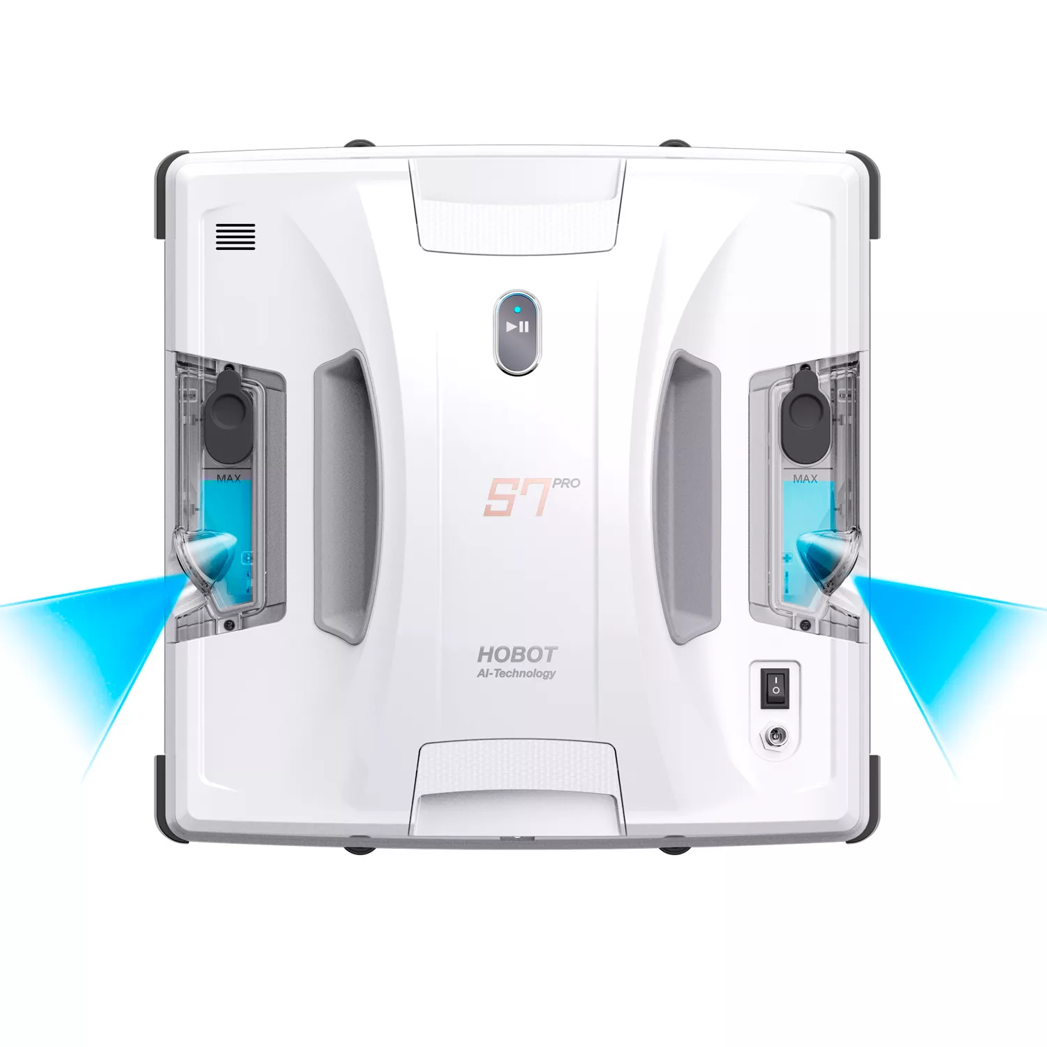 Hobot-S7 Pro оснащен двумя ультразвуковыми распылителями, которые обеспечивают подачу гораздо большего количества жидкости по сравнению с другими роботами-мойщиками окон. В новой модели от Hobot уменьшен угол наклона сопла относительно стекла, что позволяет жидкости максимально оседать на поверхность во время уборки. При этом, вода распыляется в виде мельчайших частиц (15 мкм), напоминающих густой туман. Это гарантирует превосходные результаты очистки без подтеков и разводов